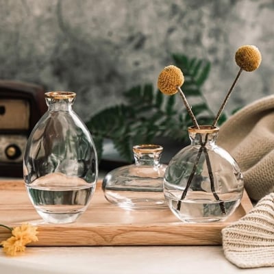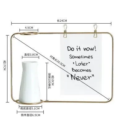 Nordisch Stil Heimdekoration - Schmiedeeisen Vase Fotorahmen Postkartenrahmen Ornamente Hydroponische Pflanzenhalter Goldene Glasvase